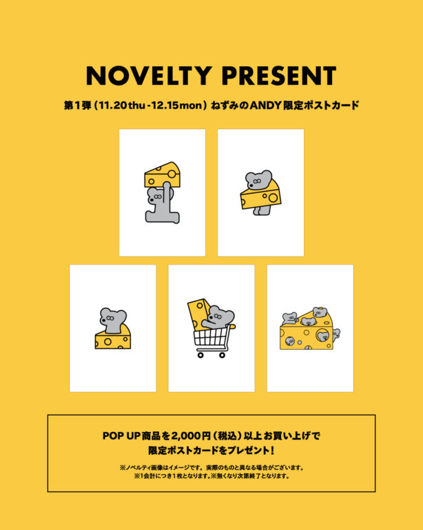 対象:POPUP商品を税込2,000円以上ご購入で1枚(全5種からランダム)