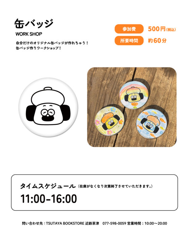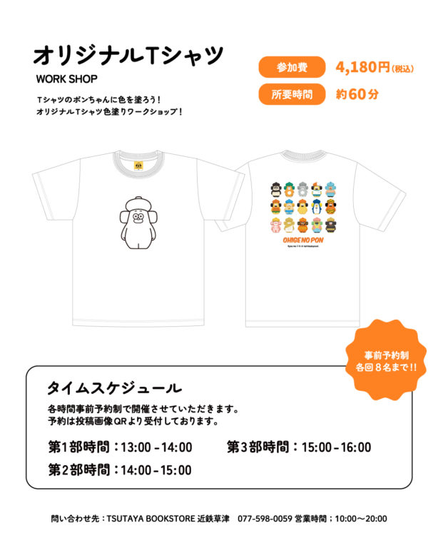 ①事前予約いただいたお客様は、当日TSUTAYA BOOKSTORE近鉄草津店のレジにてワークショップのお会計をお願いします。